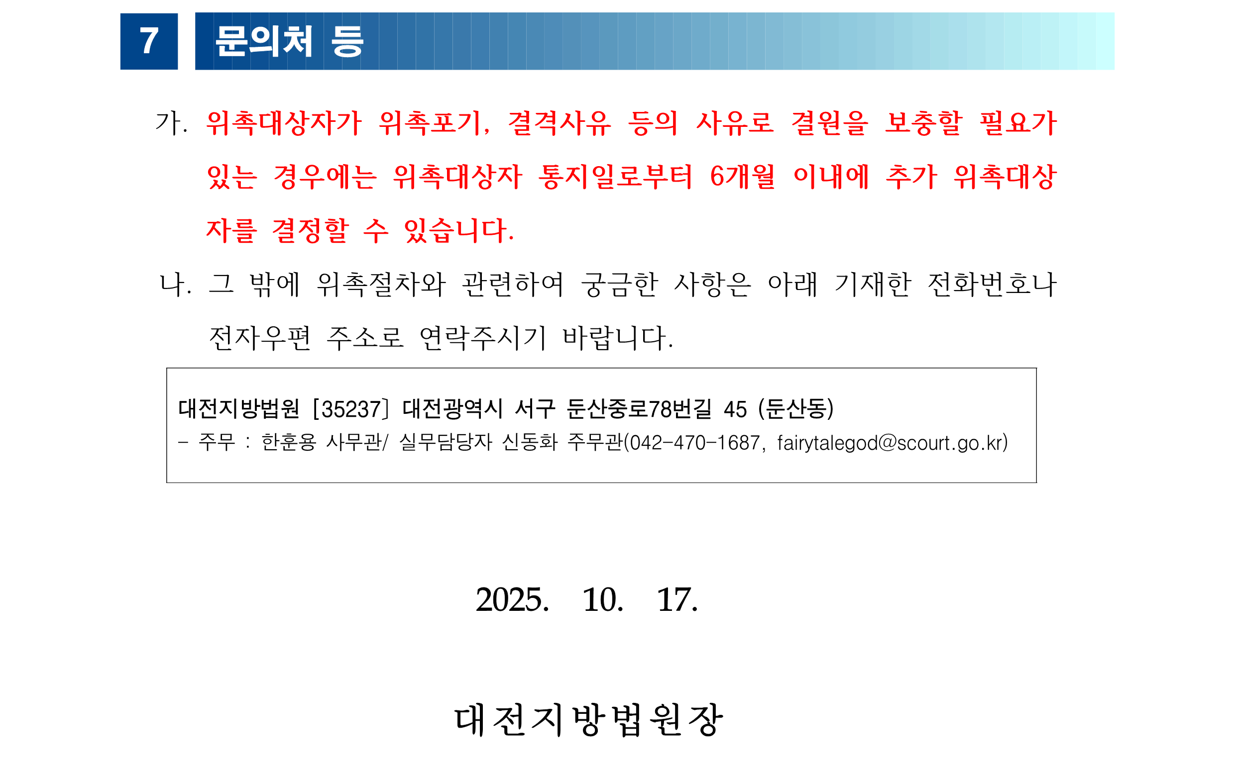 [대전지방법원] 2025년 조정전담변호사 선발 및 위촉계획 공고 안내