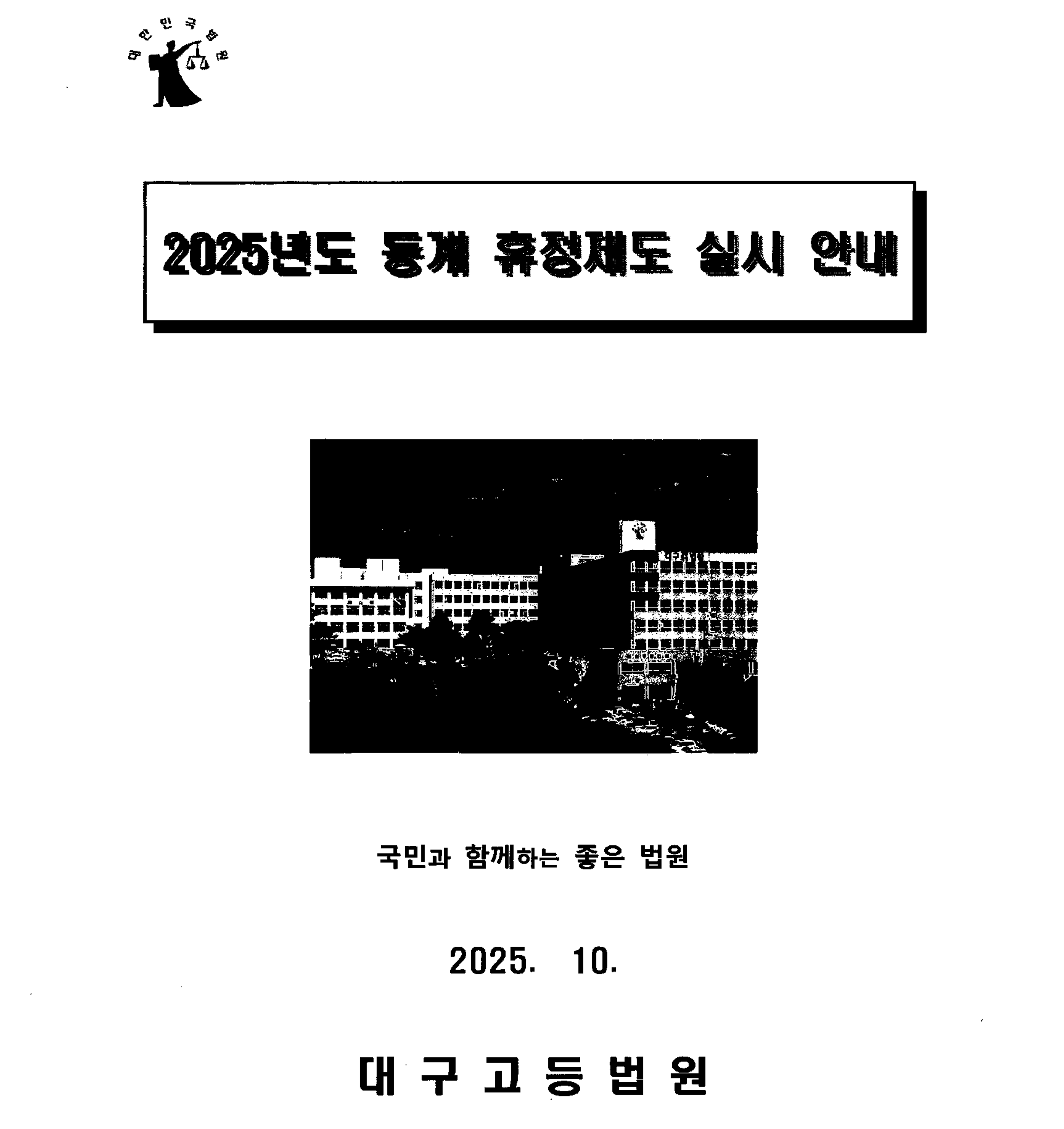 | 제목 | [대구고등법원] 2025년도 대구고등법원 동계 휴정제도 실시 안내 |