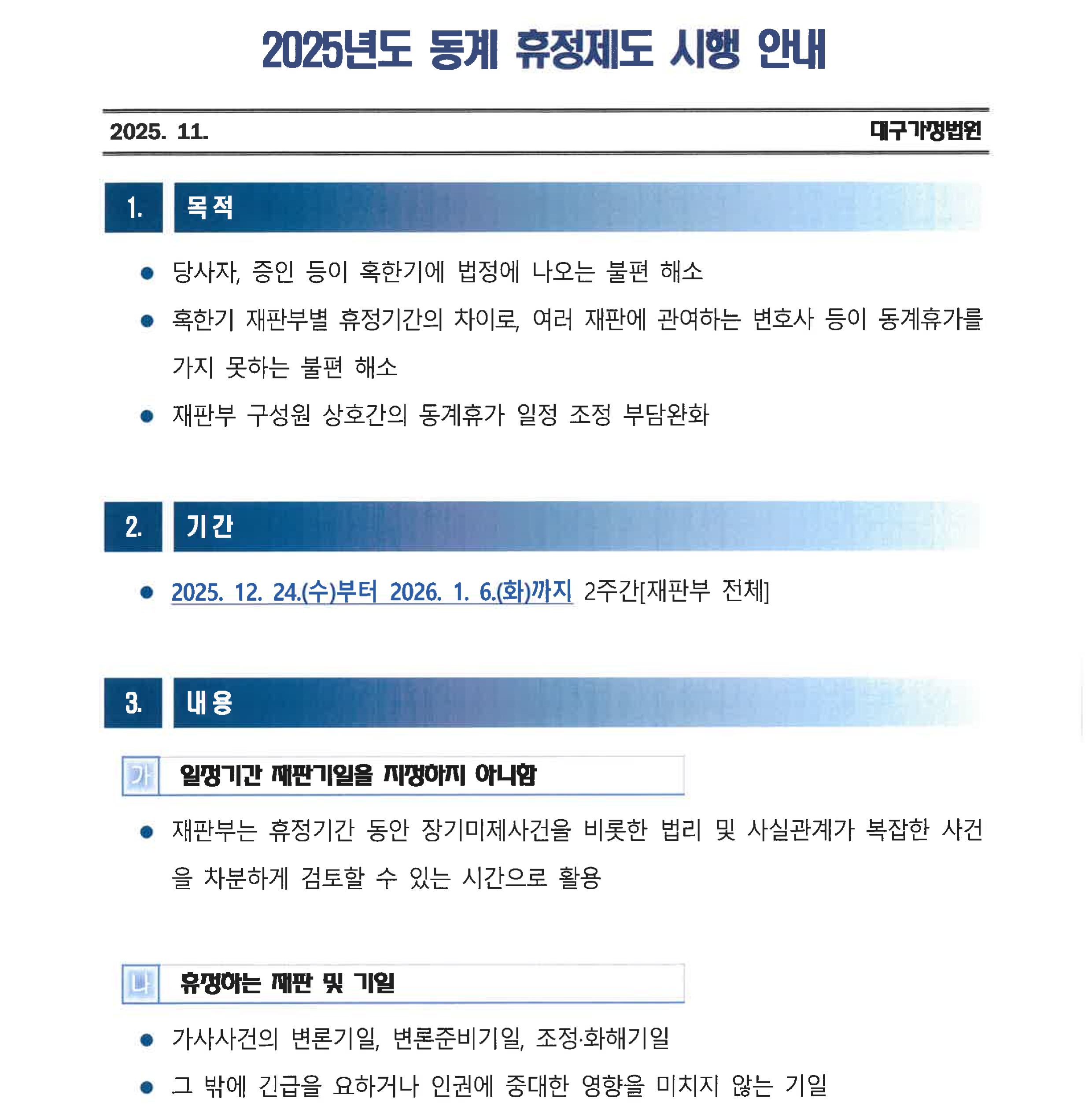 #붙임 : 1. 2025년도 대구가정법원 동계 휴정제도 시행 안내 1부. <끝>