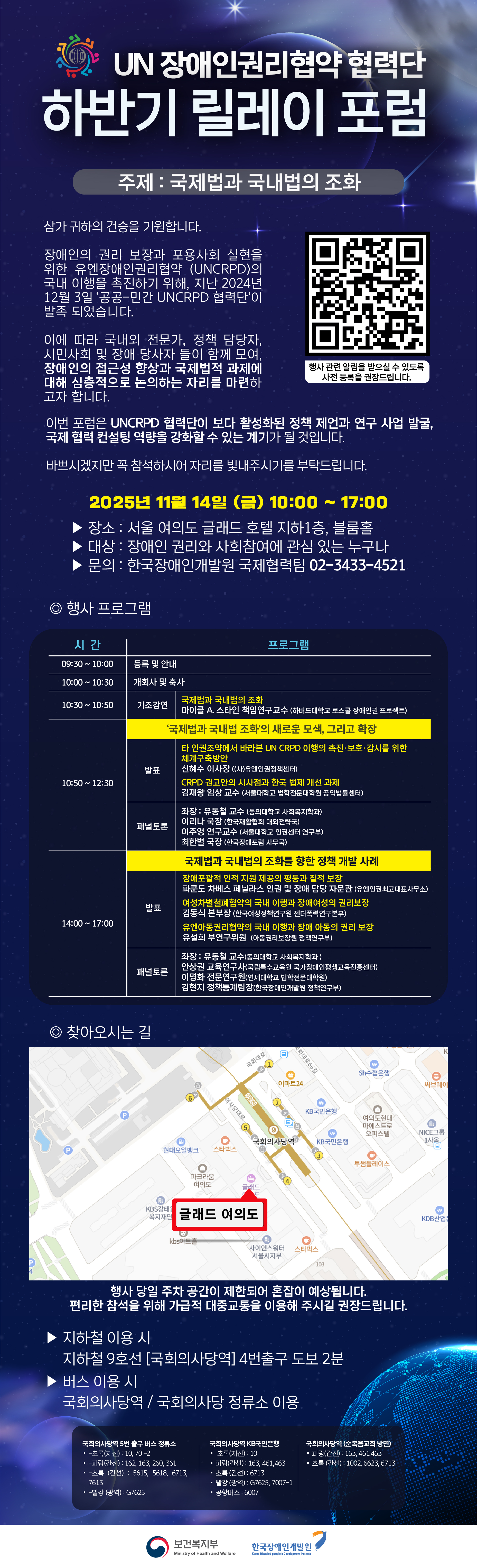 | 제목 | [한국장애인개발원] UN장애인권리협약 협력단 하반기 릴레이 포럼 안내 |