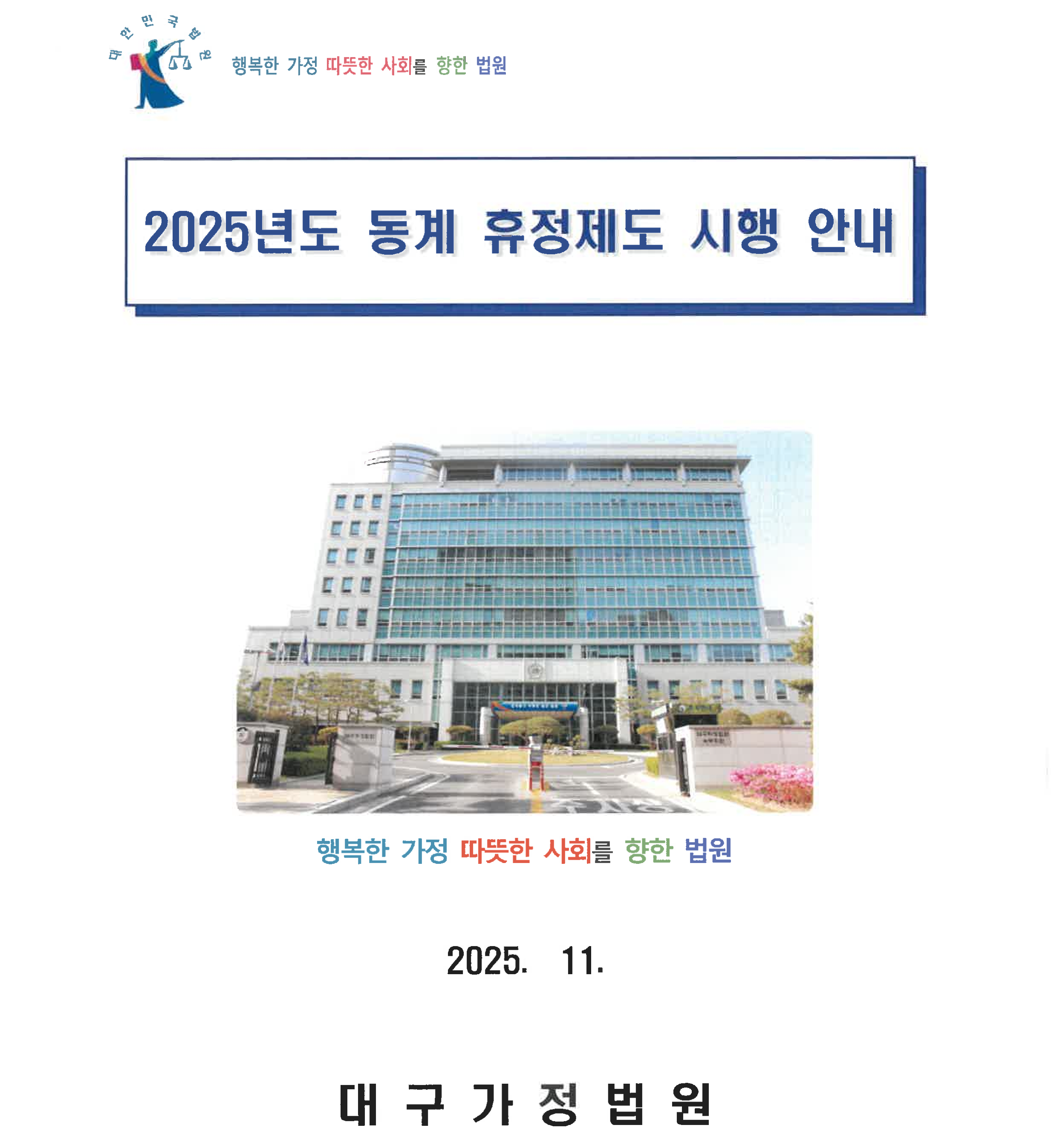 [대구가정법원] 2025년도 대구가정법원 동계 휴정제도 시행 안내