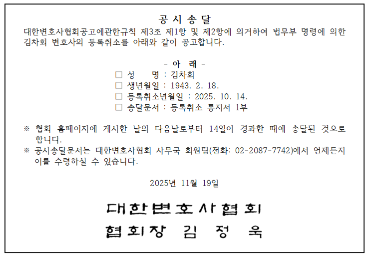 공시송달(등록취소통지)
